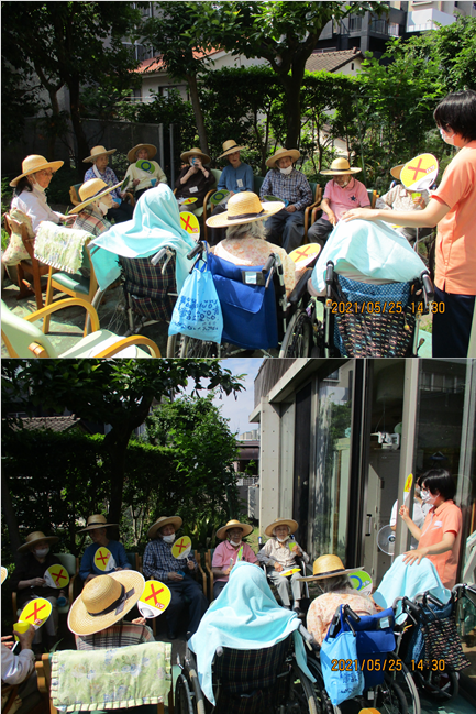 午後の合間を縫って施設のお庭に出て、利用者の皆様と一緒に