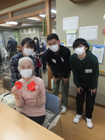 さて、今回は年内最後の行事である「お楽しみ会」に向け、飾りつけの制作を利用者様と学生さんたちで行いましたので、ご紹介します。