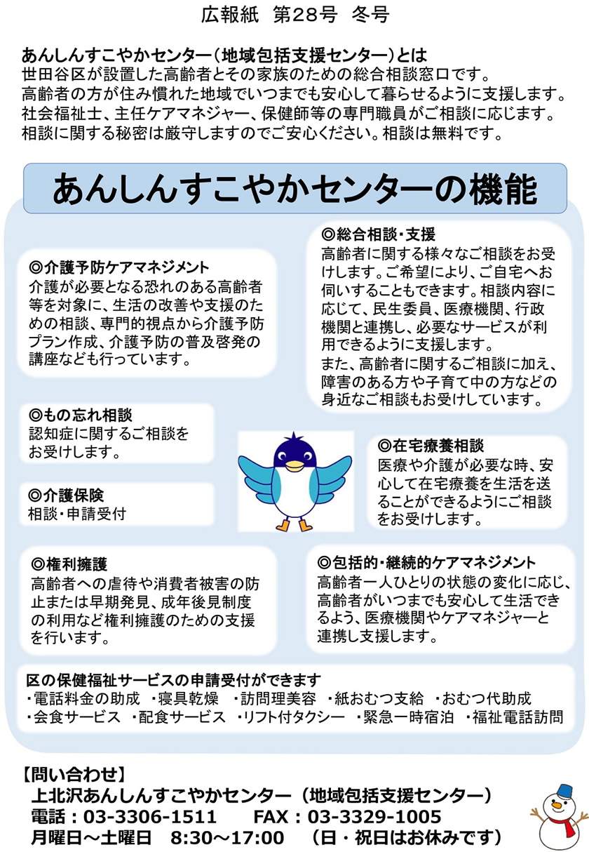 上北沢あんしんすこやかセンター広報誌(第28号)を発行しました。